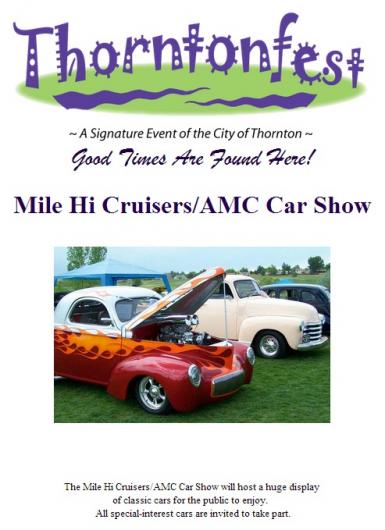 Mile Hi Cruisers/AMC Car Show in Conjunction with Thorntonfest Published October 21, 2024Categorized as Car Shows By hrhwp hi this is my bio. :) View all of hrhwp's posts. Post navigation Previous postWindy Hills OrchardNext post34th Annual Frankenmuth Auto Fest Classifieds Car Show Coverage Guest Columnists Build Articles Vendor Directory Stolen Cars Muscle Cars Car Features Event Listings VIP Sponsors Sponsors