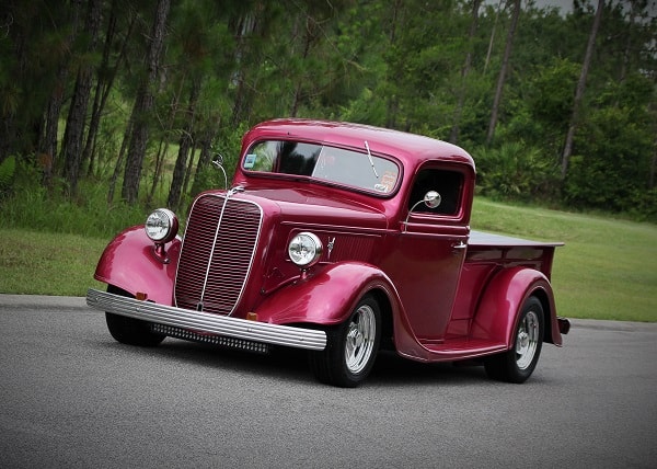 Anthony and Lynne Cilenti, originally of Livingston, NJ (yes, he met her at a car show!), now own this beautiful ’37 Ford pickup Series 85. The series 85 was so designated because of the 85 horsepower output of its Flathead V-8 originally. New also for ’37 was the rounded design of the cab and unique grill shape.