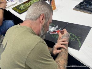 Great art went for big $$$ raised over $62,000 for RONALD MC DONALD HOUSE OF CNY … Thanks for Paul Puzza & Joe Q for making this happen with the best !!….Another great pinstriping event for RMH of CNY