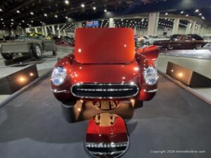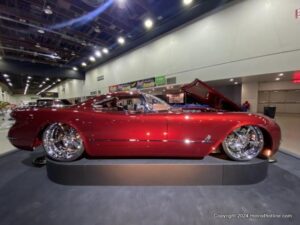 Nearly a complete re-imagining of a 1953 Corvette,called TWELVEAIR is the product of Kindig-It Design. A completely ground-up design, this car took more than five years to build. Though it shares nothing with a stock ’53 Corvette, it’s instantly recognizable as America’s Sports Car. As if the fully hand-crafted body wasn’t enough, the engine is a one-off V-12 built by Race Cast Engineering. Based on LS architecture, the engine displaces a whopping 9.2 liters. The engine runs on Haltech’s Nexus EFI and is paired to a rear-mounted 8L90E transmission. Cantilevered coilover shocks round out the custom suspension, and the wheels are custom designed for this car by Dave Kindig. Back to the car’s body—unlike a Corvette, this was built entirely by hand out of aluminum. Custom is the word inside, too, as the entire dash, console, and inserts were 3D printed. The exterior styling is inspired by an early Corvette concept car called the Corvair.
