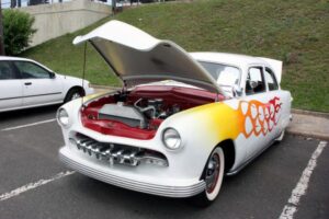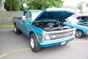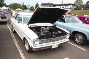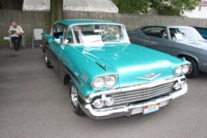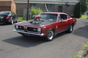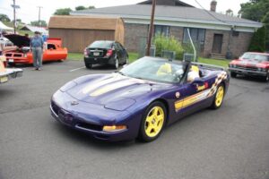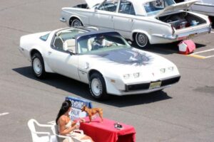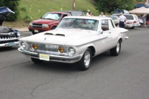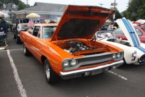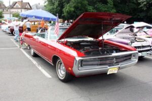 The day started off for yours truly with a near catastrophe, which took the form of the rubber line, hidden inside the steel braiding of the dual feed line for the Holley Double Pumper on my 1976 Trans Am, deciding to let loose, and start dribbling gasoline on to the Intake Manifold. Fortunately we noticed the problem as soon as it occurred, shut the Engine down immediately, and replaced the deteriorated rubber inner Line, with a fresh piece of Fuel Line. Problem solved, and we went to pick up my other car (1960 Plymouth Savoy), and headed out to the 26 annual Unforgettable Autos Club Show without any further incident.