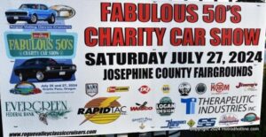 July 26- 27 2024 Free pre-show had 50s music, ice cream, water , a meet & greet on Saterday July 27th was the 29th Annual Fabulous 50s car show charity car show 230 hot rods customs & trucks , a music concert , 50-50 raffle ,50 & 60s costume contest , N S R A Safety inspection , it was a great day for a cool car show. The host club were the Rogue Valley Classic Cruisers , good job guys we had a ball.