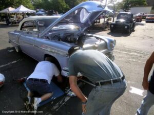 One unique feature of LEAD EAST that makes it unlike any other car event is the fact that a one-way flow of traffic cruises around the Hilton/Hampton Inn parking lot. You can drive your old car in this flow and tour the Hilton and three other parking lots, or you can just sit in your lawn chair and watch all the cars file by you. On Friday, Saturday and Sunday night, this “spin cycle” action gives the event a life, a pulse, and an atmosphere unlike any car event on planet Earth!