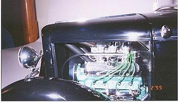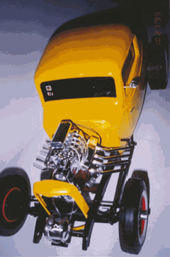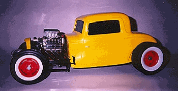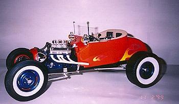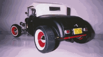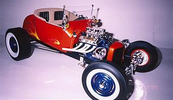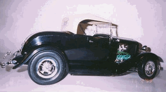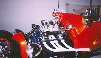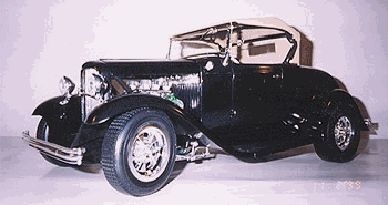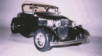 | Ron has become seriously involved in this hobby, as it is something he can afford. He found that the 1/8 scale car was nearly extinct at the time. There have been very limited re-issues of the ’32 ford roadsters in 1997, but the molds have now been destroyed. There isn’t much out there in the market place, which leave Ron to get creative. He has learned to fabricate and mold parts as his needs arose. Ron uses magazine articles (streetrodder, etc) and full-scale cars to see how things are done in the real world. |