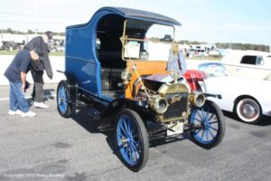 This was the 36th annual Fall Swap Meet and Car Show at the Englishtown Raceway Park, and there was something a little different this time. Unlike what was the case in past years, this year, one could bring their Stock production, or modified vehicle, etc, on either Saturday or Sunday. The change was made by the Show promoter in order to boost attendance, and while apparently successful on Saturday, on Sunday the change hadn’t markedly increased the number of vehicles on display. However, even with a diminished turnout, versus years past, the variety of vehicles provided a little something for everyone to see. One of the more notable vehicles entered into the Show, was a Chevette, with a Big Block V-8 in it. The car was bone stock in appearance, but the rumble gave away the 800 pound gorilla hiding under the Hood.
