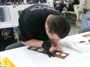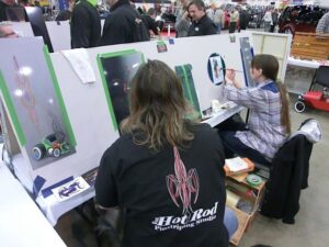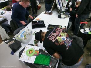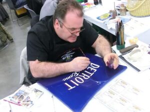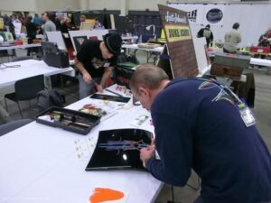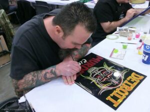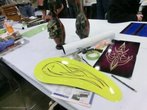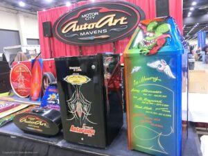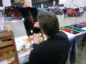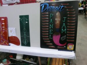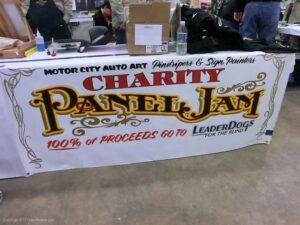 Back again for another great MOTOR CITY AUTO ARTS PINSTRIPER’S PANEL JAM from DETROIT AUTORAMA. The year’s event had THE OLD & YOUNG PINHEADS …showing their talent. All the proceeds from the Panel Jam Auction is going to Leader Dogs for the Blind http://www.leaderdog.org/