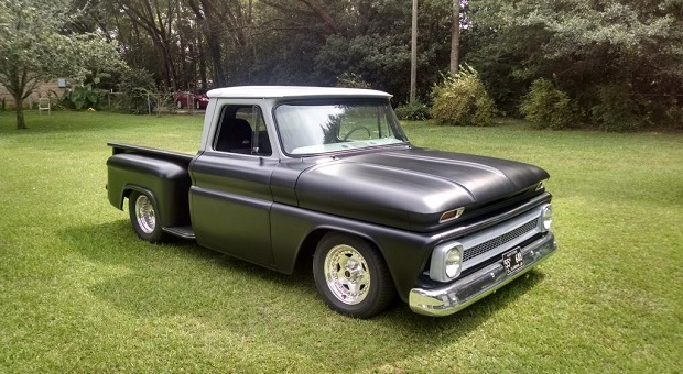 This pro street build started on a good note – with a truck that withstood the weather better than any truck should. The ‘66 Chevy Step truck was finished in a metallic olive green, had all the necessary trim and fixings and had spent 80,000 miles in the Georgia weather without corrosion, but it was quite Plain Jane by hot rod standards. Nevertheless, Greg had big plans for the build: a flat-black paint job, a 540ci motor up front, coilovers and, as any Pro Street build needs, a massive set of rubber in the rear.