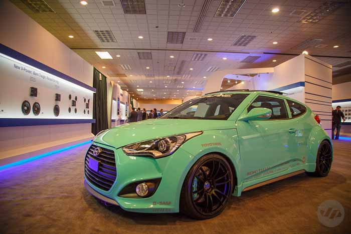 CES 2013 (Consumer Electronics Show) – Over in the Alpine Electronics booth we spotted this 2013 Hyundai Veloster Turbo featuring a BASF R-M Porsche Mint Green paint job.