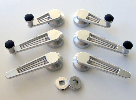 These BANJOLUXE cranks and handles are NEW from Big Als Carponents. Machined from billet aluminum, these are a new design that features a cut out design with stainless steel rods and black hard plastic inlay on the knob. These will fit early or late cars and trucks that operate with a shaft. When purchasing, please indicate the year and model of vehicle these are to be installed upon.