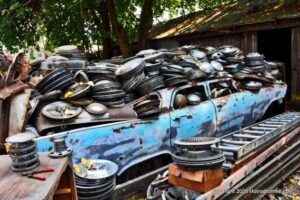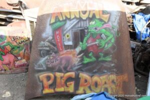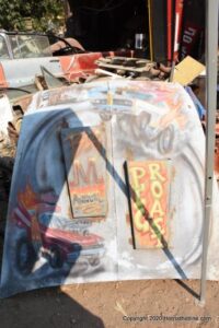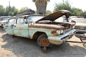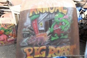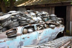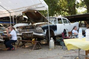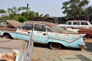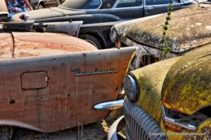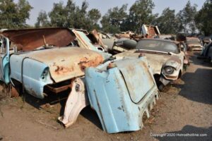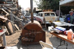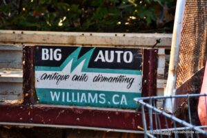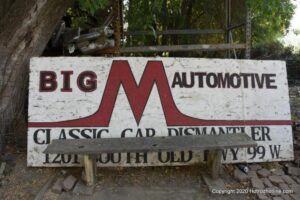 Williams Calif. Oct. 3 2020 Big M Antique Auto Dismantling 10th annul Pig BBQ at the auto dismantling yard was one to be seen for yourself , you just don”t see parts like this anymore at any yard. There are 1930’ 1940’ 1950’ car parts or complete cars for sale or a steering wheels to a chrome strips etc. They have a pee-wee golf course to a out door movie theater, in the yard. Never seen anything like this before , so if you need that hard to find part give them a call, it might take a while because it’s a one man shop.