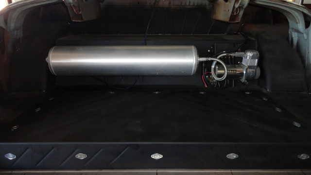 The trunk houses the air ride system and the fuel tank; both of which look unsuspecting and if slightly rusted, almost original. It’s a wonderful combination that would leave a discerning eye unnoticing, but it does allow the car to do some pretty miraculous and eye-catching things with ride height.
