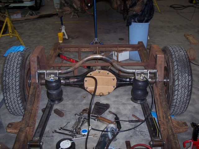 Though the engine bay was very spacious, as expected with a Bel Air, the transmission tunnel had to be chopped significantly to fit the big, burly automatic inside. Then, with the fender wells removed and air bags employed, the car was made a very low roller; which was happy to be laying rockers, if you’ll accept the technical term.