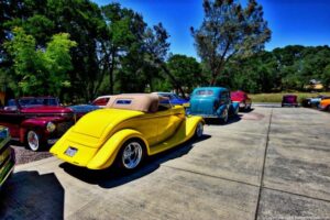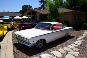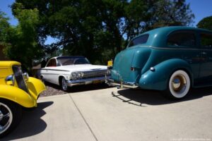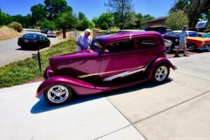 Bob & Sue’s hot rod get together at their beautiful home in El Dorado Hills CA. The day was perfect for a Roadster ride, and all our friends were having a good time. The food and drinks were great . As you can see in my photos, they filled the place up. Plus they had door prizes – just bring your chair, Bob & Sue had it all covered. What a cool day it was! Thank you to our hosts Bob & Sue!