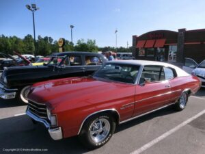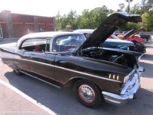 While heading back after a perfect day in Oriental, NC stop for a bite at BOJANGLES “ FIRST SATURDAY” Cruise In. Still at 6pm it was 86 degrees and some of the locals made the trip for the cruise despite the temps. There were a few different cars that I normally don’t run into while cruising. The black and White Chevy barn find along with the Ford Model A with the Pipe and Moonshine made it worth the trip. NJoy the pics …………. Big Al