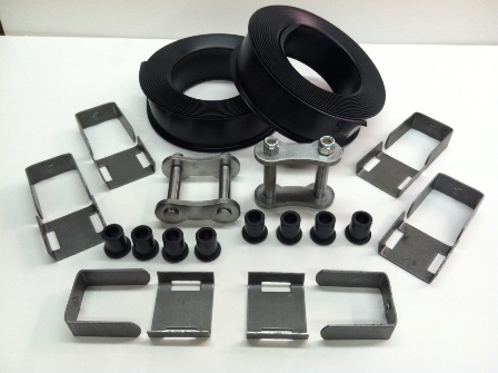 Include 2 Center Bolts, 2 rolls (40 ft) of Spring Liner, 6 Clamps & one pair of REAR (long) Shackles