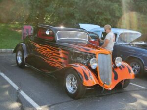 What to do when it’s 90 degrees outside? Go for a ride with my factory air in my ’32 to the SATURDAY NIGHT CRUISE hosted by The Wanderers Car Club. There was a light crowd early, when I got there; I stayed till 5pm.
