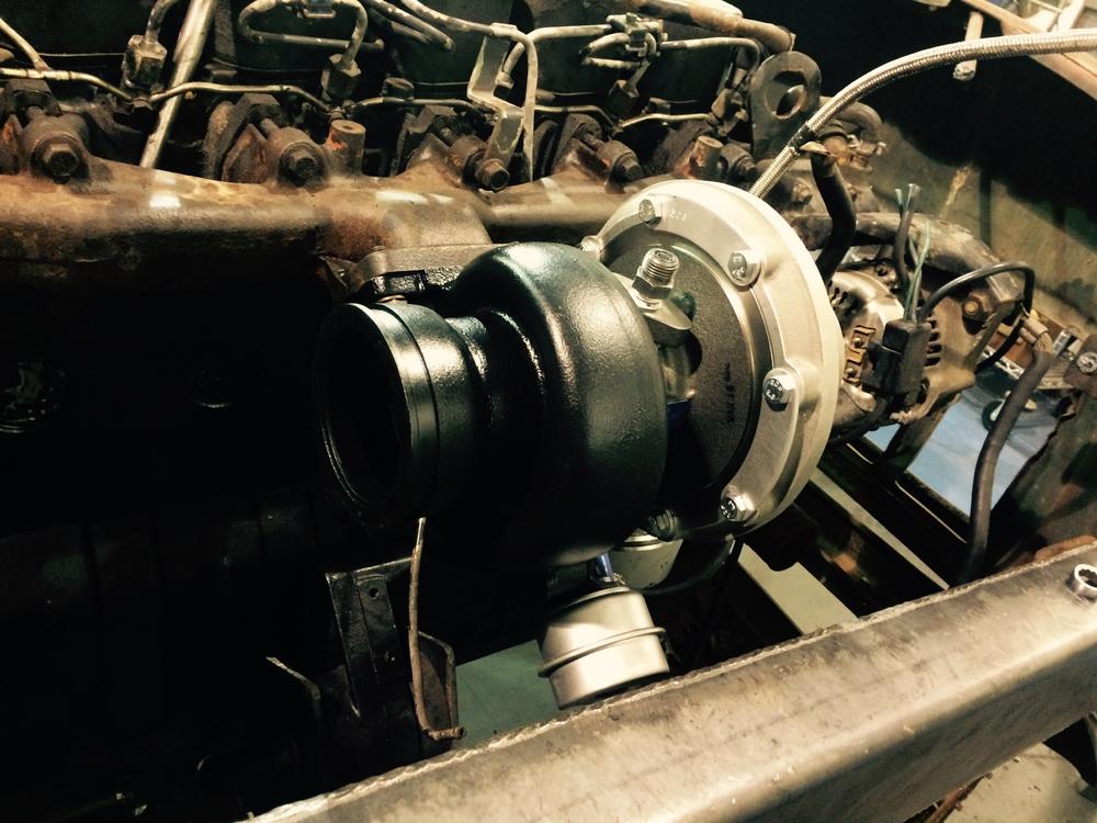 Since the truck would eventually weight 4,300 pounds, Cheek had the need for a hefty set of axles. He grabbed them from 2006 Dodge 2500, as well as a set of disc brakes to arrest the speed brought on by the addition of an intimidatingly-large Industrial Injection Silver Bullet 64 turbo.