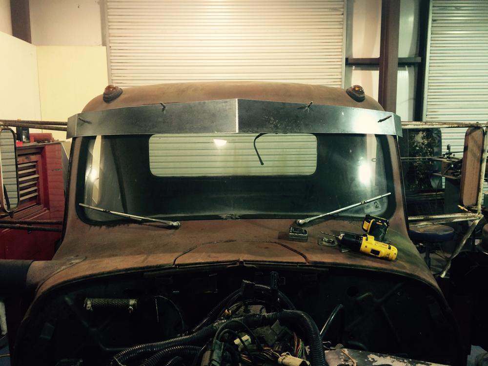 Next, Cheek picked up some oak slats for the bed, then had his brass/copper radiator cleaned. At that point, Cheek was frustrated and waiting on his airbags, but the combination of new parts made the rabies vaccine a little easier to take. Riding on that shot of enthusiasm, he went ahead and fabbed a pretty nifty sun visor from 14-gauge mild steel from an oil drum: