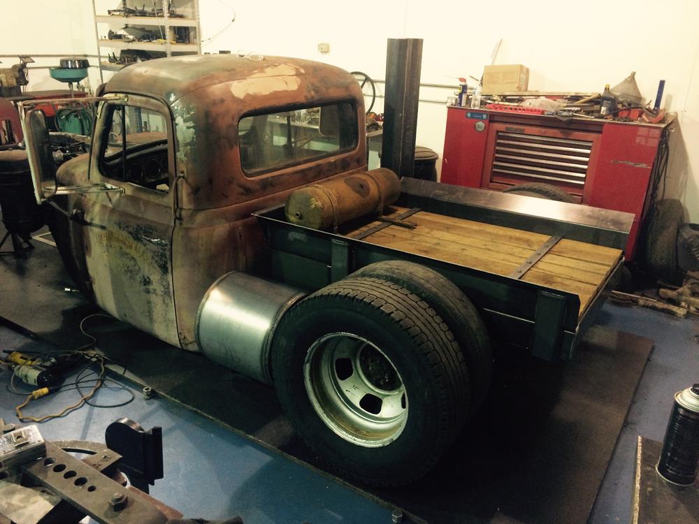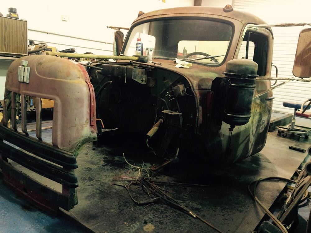 Cheek had an a few motors taking up too much space in his garage, and knew he could trade one for something more interesting. He needed a classic rat truck his his life. After a little asking around, he found a friend who knew someone trying to get rid of their International truck, and soon after, a deal was struck. Within weeks, Cheek had traded his Cummins for this ‘57 International RD205A, and after trading the rear end and a set of disc brakes from a One-Ton Ford Dually, he picked up an Eaton Fuller five-speed from a delivery truck.