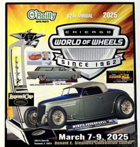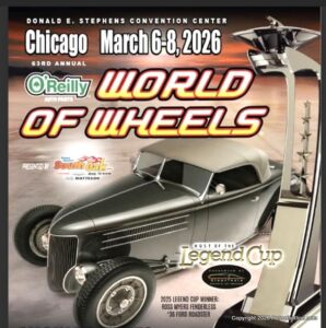 3/8/2026 Rosemont, IL The 63rd Chicago World of Wheels was held at Donald E. Stephens Convention Center in Rosemont, IL, March 6-8, 2026. Featured were Legends of Hot Rods, Indiana Thunder Roads, RC Drifting, Cycle Rama, Chicago Brushmasters Charity Auction, and Celebrity Showcase with Nicko McBrain, Kevin Nash and Catherine Bach. Hundreds of Cars were competing for Majors Awards including The Legend Cup, Casi Cup, Jack Trepanier Legacy Award Master Builder Award and Many Best of Class Trophies.