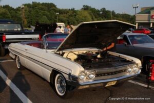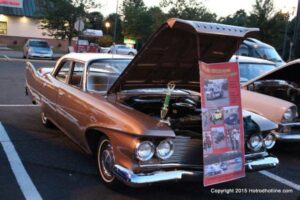After months of wanting to get there, I finally made it to the Classic Knights Cruise Night on Ferry Rd, in Old Bridge NJ. The event is held in the Parking Lot jointly shared by a Friendly’s Restaurant, and A & P Grocery Store, and now a Sleepys Mattress Store. Despite having lost some Parking Lot to the latter business, the Classic Knights still put on a really great event. I arrived at a little after the official starting time of 6:00 P.M. to an already fairly full Show Field, but managed to secure a spot next to my what was the predecessor to my Plymouth in the base model offering of Plymouth, a 1956 Plymouth Plaza. While the majority of the vehicles present were 50’s, 60’s and newer vehicles, there was one notable pre-war vehicle, an original Dodge Brothers Dodge from the 1920’s. At 8:30 P.M., the Dare Trophy Raffle was called, the 50/50 Raffle, and then the Trophy presentations began. Both my 1960 Plymouth Savoy, and the 1956 Plymouth Plaza next to my Plymouth, won Trophies. Kudos to the base models for tonight. I hope I can spare some time to get back to this Cruise Night, and only time will tell how well hopes match reality.