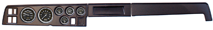However, the new panels accept Autometer 3-3/8in diameter speedometer and tachometer dials and 2-1/16in water temperature, oil pressure, fuel level and volt meter gauges. The most popular Autometer gauges provided include their electrically powered American Muscle and Ultralite styles. The Ultralite is also available as mechanically operated.
