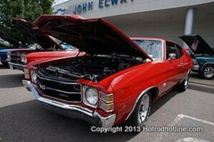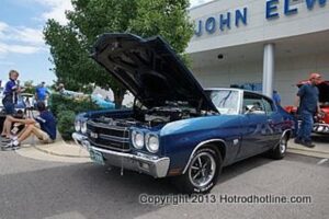 The Colorado Chevelle Club had their show at the Elway Chevrolet dealership in Englewood, Colorado. The turnout was far more than expected and the cars were almost stacked like cord wood. Elway provided hot dogs and sodas for the bunch of car nuts that showed up. All in all, a good show.