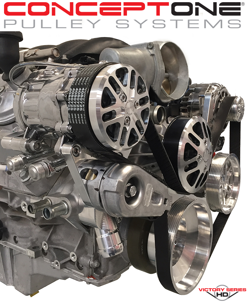 Concept One Car Pulley Systems. When working on your engine you are presented with a number of options to make things work according to your needs and specifications. Having high performance pulley systems in place is crucial to improving power and maximizing efficiency. At Concept One we have the right product for any need you may have. If you’re rebuilding, upgrading, doing maintenance, seeking better performance or just trying to make the proper decision, we are the company you can turn to for guaranteed satisfaction. Our pulley systems are built in an a way to help minimize stress during installation
