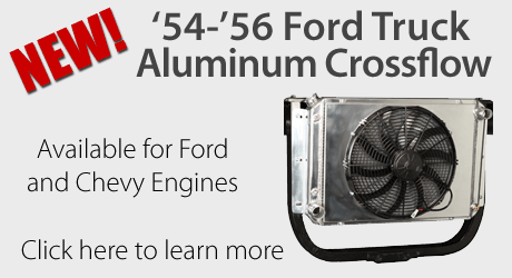 Ford Truck, 1954-56 V8 350 Crossflow Aluminum Radiator w/Shroud & Fan
