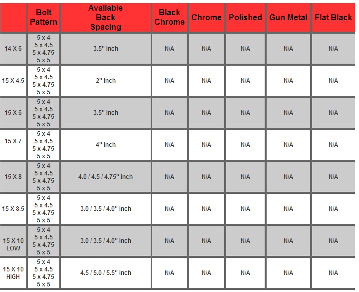 * ONE PIECE DESIGN * CHROME & POLISH IN STOCK * REV. MOUNT * SMOOTH LIP * SOKET LUG HOLES * REDUCED PAD |