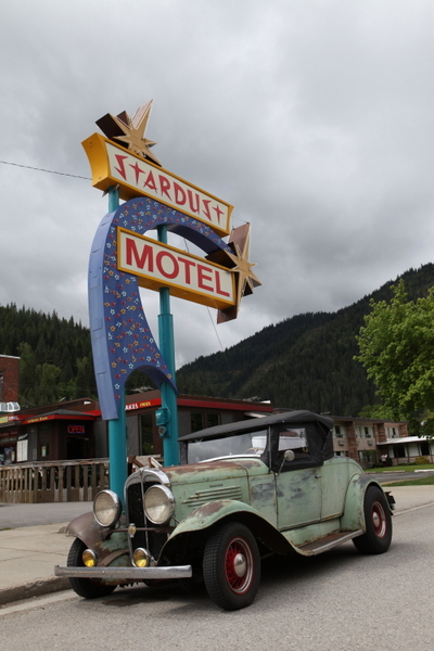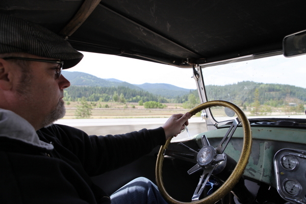 The next morning found us with a flat rear tire which we only discovered because Jon is in the habit of checking tire pressures each morning. The thick sidewalls on the rear truck tires held the roadster up with no tell tale signs that the tire was low on air. Lucky for us the tire held air just fine the rest of the trip. Looking back we figure we may have fallen victim to someone intentionally letting air out of the tire while sitting overnight in the hotel parking lot. We pushed on hard, averaging 75 mph, and reached Missoula, MT by sunset. Sunday morning (and Mothers Day) we rolled the dice and hit up a favorite honey hole for hot rod parts, and to our delight they answered the door and invited us in. We had great conversations, and picked out a few items to have shipped home, then, we hit the highway. With the goal of Eugene, OR and plenty of daylight ahead of us decided to pull of the interstate and take some back highways through the Cascade Mountains.