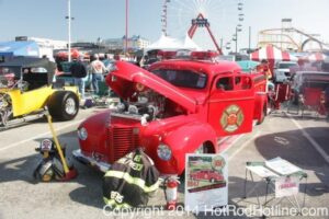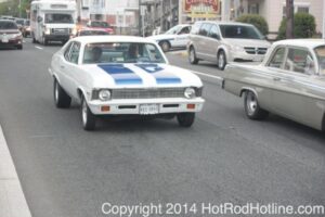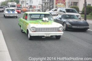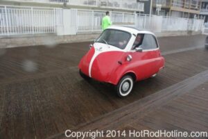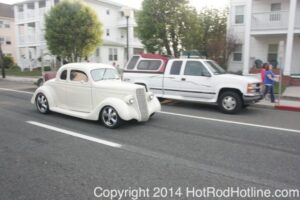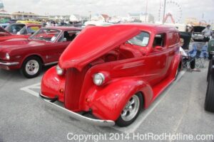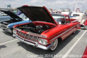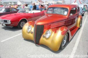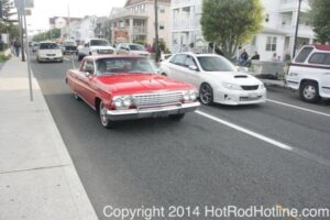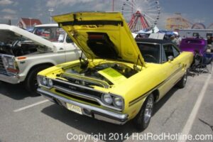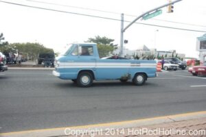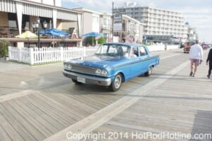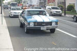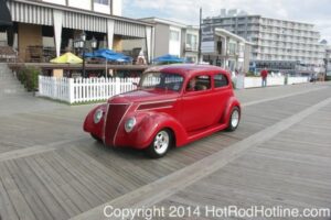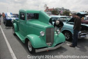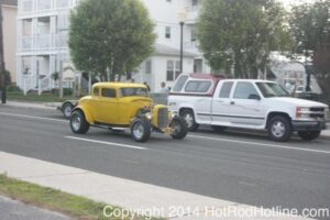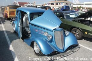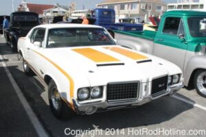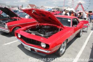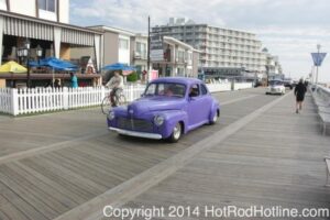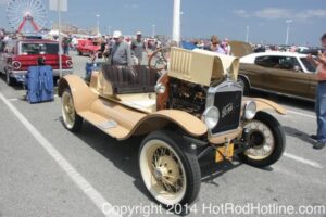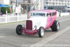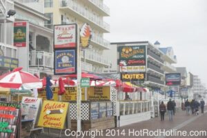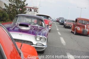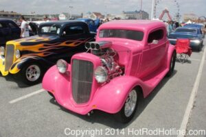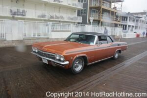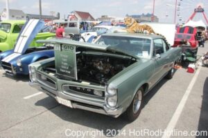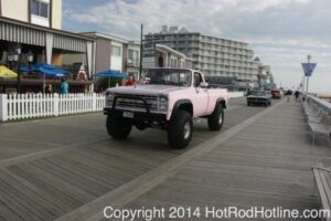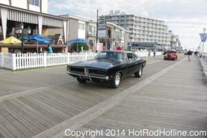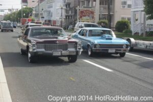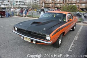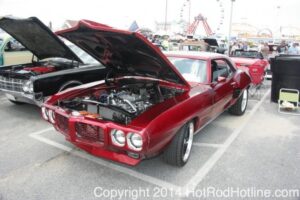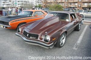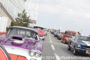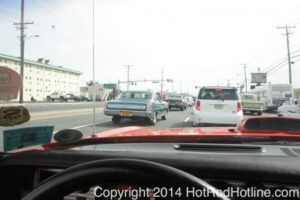 This year marked my second trip down to Cruisin Ocean City MD with my 1976 Trans Am, and this year, the first time I entered the Show. The ride down to Ocean City on Thursday (5-15-2014) was pretty much uneventful, other than a few minuscule drops of rain, and other than our obligatory stop at the Milford Diner, in Milford Delaware for Brunch, we ran straight through to Ocean City. Once we arrived, we checked in at our Hotel (the Beach Plaza Hotel), dumped out luggage, and headed over to the Convention Center to pick up our Show passes. Unfortunately for me, we arrived too late for me to pick up my Show entry packet, so we headed out for a little Cruisin on the main drag in town. Much like last year, there was an overkill presence of Police, so while a few brave souls tried burning some rubber, or a little stoplight drag or two, the large number of vehicles with flashing lights, found behind those who tempted fate, kept yours truly from doing much Thursday night, other than cruising. Possibly due to ever increasing gasoline prices, coupled with the somewhat mundane nature of the cruising, this year, as last, saw a lower number of classics and Hotrods participating in the cruising activities. We awoke Friday morning to overcast skies, and so we took our time getting ready, watched the Boardwalk parade of Show cars, and then headed over to Happy Jacks for Breakfast, and then on to the Convention Center in the modern Pickup one of my Son’s friends drove down in. By the time we reached the Convention Center, the rain was coming down in sheets, washing away all thoughts of participating in the outdoor Car Show by either the Convention Center, or the Inlet Parking Lot. Instead, we went inside the Convention Center, I picked up my Show passes, and we toured the indoor events. After having seen all we were going to indoors, we sauntered on back to our Hotel, and I headed over to the Hotel Lobby, so I could get a Wi-fi connection for my Laptop. Finally, about 2 hours before dark, the rain finally stopped, and then I began a two hour clean up of my Trans Am, so it would be ready for the Saturday Boardwalk Parade, and Show. I awoke at 5:30 A.M. Saturday morning, drove down to the Parade starting point, and then found out I needed to get a Pass to participate in the Parade. So, I then drove over to the Convention Center, got on line, and secured one of the necessary Parade Passes. After having claimed my prize, I beat a hasty retreat back to the Parade line-up, ending up about 3 blocks from the starting point, which from what I later found out, wasn’t so bad after all, as the Johnny-Come-Lately’s, were 2 miles behind where I was. The Parade kicked off around 7:30 A.M., and we slowly made our way down the Boardwalk, toward the Inlet Parking Lot. To say the least, the Parade was a blast, with tons of folks lining both sides of the Boardwalk. We arrived at the Inlet Parking Lot around 8:30 A.M., that is those of us at the head end of the Parade line, and half an hour after I was unpacked, the Parade was still going. Once I was settled in I started going around photographing the numerous beautiful vehicles on display, only coming back to my own car to eat, and rest a short while before attempting to get to the outdoor Convention Center part of the Show. Due to the large number of vehicles trying to leave the Inlet lot, and heavy traffic on the road outside the Inlet Lot, it took 1-1/2 hours to travel the 2-3 miles to the Convention Center, so leaving at 3:30 P.M. to get to the other part of the Show, proved to be a BIG mistake. By the time we arrived at the Convention Center, the Show was over for the day. We cruised around a bit more Saturday night, stopping by again at the mini Show hosted by Hooters on the main drag, photographed some more vehicles, engaged in some low key stoplight drags, I picked up my Boardwalk Parade Photo TShirt, and then we headed back to our temporary home at the Beach Plaza Hotel. Sunday was pack up day, eat Breakfast at Happy Jacks again, followed by a short visit to a largely empty outdoor Show at the Convention Center, and at 12:30 P.M., we bid Ocean City MD farewell, and headed north to home.