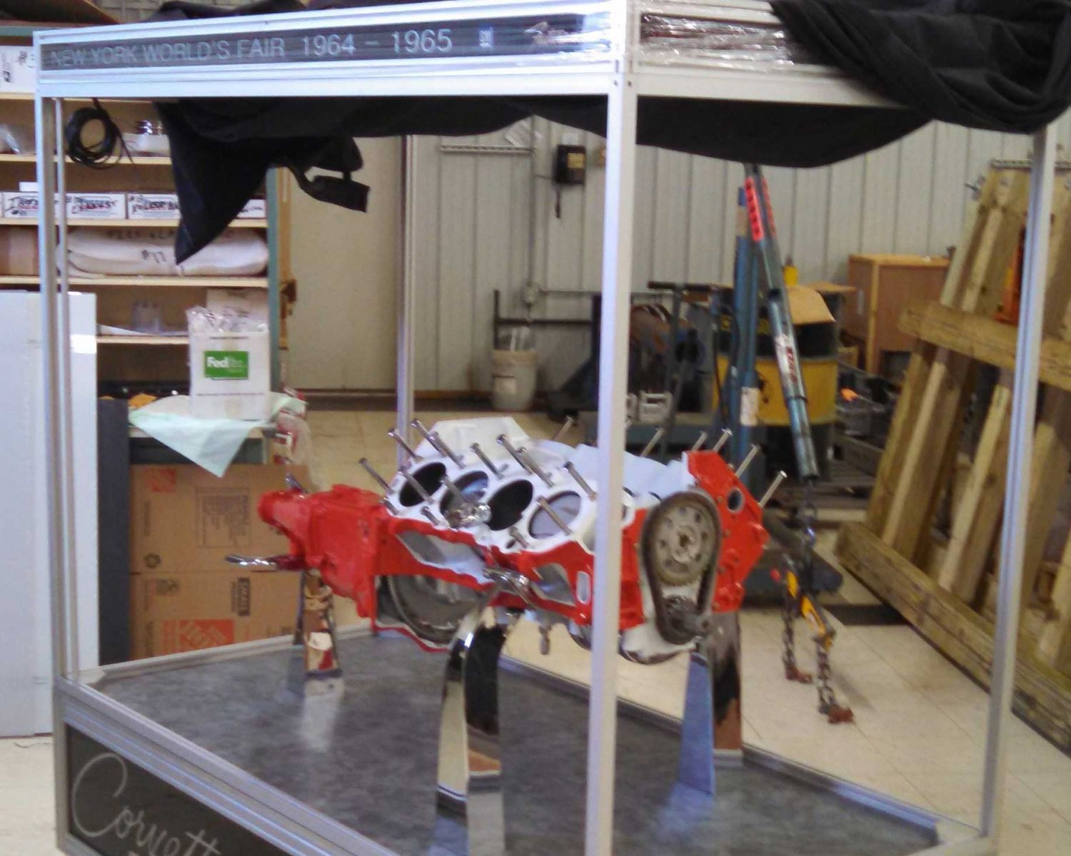 Wiseman sold his Corvette Display in 2007 but retained the Corvette 396 engine and after a futile attempt at restoration, gave up. Then in 2011, Kayser was speaking at a national Corvette event in Michigan where he met Simlik and learned of his cut-away chassis from Ferris State. Kayser then called Wiseman and learned of the 396 engine for the first time. The same engine that Kayser’s dad was part of almost 45 years ago at the NY World’s Fair as a spokesman for the new Chevrolet Big Block engine. Wiseman happily sold the engine to Kayser who began the restoration project of a lifetime. After all, who better to put the engine back together than Kayser, who was the Tonawanda Big Block Business Team Manager and also the son of a man who helped display the 396 cut-away it in the first place back in 1965!