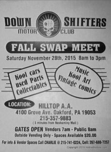 Great Fall day big change from last year in the 50’s at the DOWN SHIFTERS MOTOR CLUB FALL SWAP MEET. The last go round to get your parts for your winter projects. Great prices on the car and bike items some unusual items get for your Xmas list ….