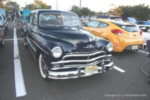 After a summer of rain outs, and the usual oppressive humidity/heat when it wasn’t raining, the Edison Light Cruisers finally caught a break tonight (9-26-2013). The air this evening was cool, with no rain in sight, and the crowd, substantial, with at least 50 or more vehicles on display at tonight’s event. DJ Jukebox Jimmy spun the tunes, Carl the Hotdog Man served up his usual fare, Die cast Jimmy was on hand with his large selection of die cast Car models, and the T-Shirt vendor was there too.