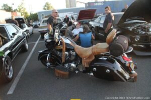 In what seems to be a rare occurrence, the weather cooperated on not only a Thursday night, but during my vacation on a Thursday night, and I was able to enjoy the Cruise Night hosted by the Edison Light Cruisers at the Home Depot. The turnout was strong, most likely due to the participants eagerly turning out in mass after getting rained out on so many Thursday nights so far this Cruise season. DJ Jukebox Jimmy provided the entertainment as usual and Dirty Rat Apparel, Diecast Jimmy and Capt Sweet Tooth respectively provided automotive apparel, diecast car models and food. The festivities continued until 8:30 p.m., at which time the trophies picked on behalf of the sponsors were awarded and the crowd slowly began to depart.