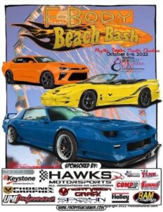 The F-Body Beach bash is an annual gathering of f-body and gm enthusiasts. Held in conjunction with Cruisin the Beach. Great showing all types over 400 in attendance.