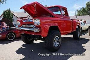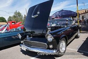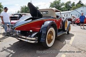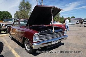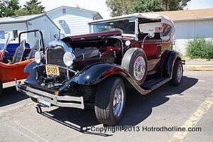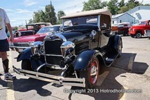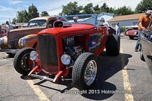 On August 25th, 2013, Franks Pizza of Englewood, CO. held their 5th ever car show. The turnout was great and with their small parking area, they did a great job of getting everyone settled in for the day. The highlight of the cars was the Hupmobile boa tail that showed up late in the show. A good time was had by all.