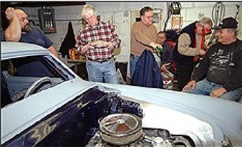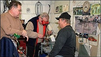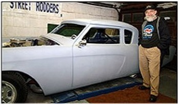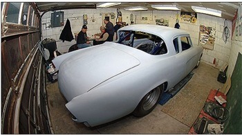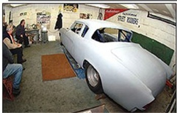 | Hi All Here’s some pics sent by Thomas McGinnity of the “Friday Nite Boys” at Fred D’s on February 6, 2004. And here’s what Thomas had to say about it! Fred started his ‘53 Studebaker around 1984, or so. We were to bring it to the Bonneville Salt Flats in 1994. The garage where the Baker is pictured is where Fred and his brother Jimmy – James built many street rods. The WSRA “Friday Nite Boys” spent many a night helping Fred build this rod. Members take turns hosting the Friday night affairs. We have been getting together on Friday nights since 1972. And here’s Fred’s Bonneville Baker, getting ready for paint! Thomas McGinnity! |