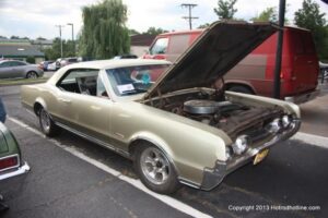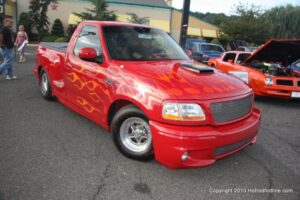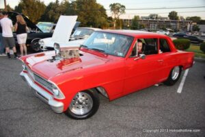 For the second time this season, I made it to the Cruise Night sponsored by the “Full Throttle Car Club”, at the Bridgewater, NJ Fuddruckers. The weather couldn’t have been nicer, with warm, but not humid temps, and not one threat of rain for the entire evening of 7-30-2013. The turnout for this night’s Cruise Night was good, but I do have to say, not as good as nights like this one used to be, before the beginning of the gas price spikes in 2001. The DJ spun his repertoire of 50’s/60’s tunes, “Die-Cast Jimmy” was on hand with his assortment of die-cast Car models, and for then Vehicle Owners, there was a 10% discount on the delicious Fuddruckers hamburgers, and other menu selections.