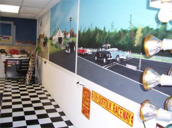 A mural of Spencer’s transmission shop, started by his dad and later Spencer added on to enlarge the show. |