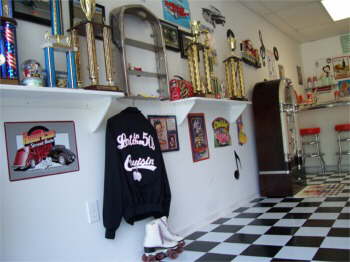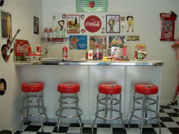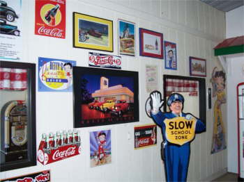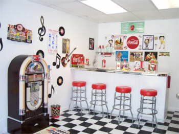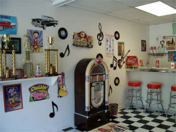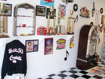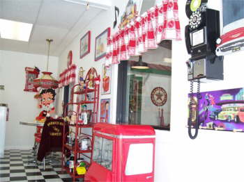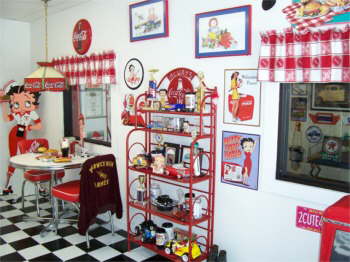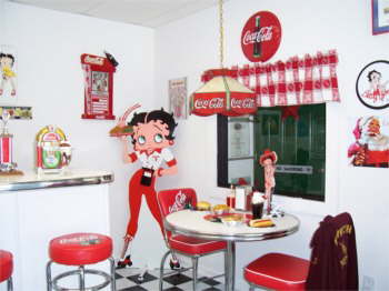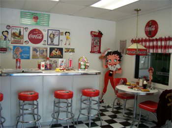 | Bettys Showroom. Betty has a 50’s diner decorated with Coke and Betty Boop, jukebox and all. |