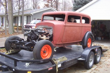 Hi All   Here’s a few Garage Shots from the last 17 months of my ‘33 Plymouth PC 2-Door Sedan. It entered the family in November ‘02. We started it as a “Father/Son” project, and my son Bryan went with me to Iowa to pick it up. Here he is helping to get it off the… Continue reading Ken Nowak's '33 Plymouth PC 2-door