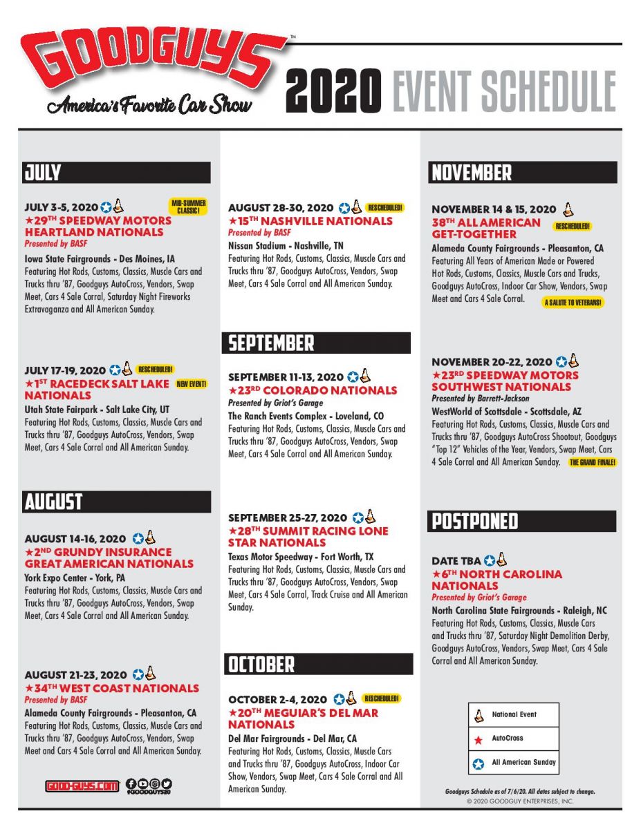 Event Update 8/21/20: (Make sure to double check the official Goodguys Event Schedule for the latest update as regulations are still changing day to day)