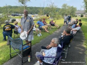 No shade steamy 85 deg on asphalt so we made our own show in the shade!! Stayed for a few hours time to ride like real car guys !!