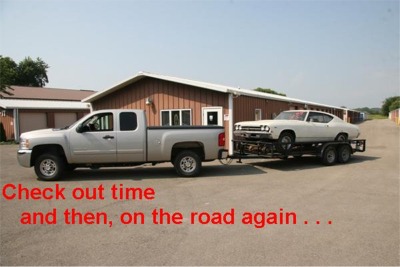 I was at work early Friday morning, met with my boss and explained the situation. Called a friend (Ken H) from work to see if could accompany me on a road trip and together, we headed for Ottawa, IL shortly after noon that Friday. We drove straight through, spending a very short night (from 3AM to about 7AM) about 60 miles South of Ottawa. After coffee and a light breakfast on Aug 15th, we headed to Ottawa and the storage unit. After loading the car, I settled up at the front office ($1.00 total cost) and we started for home. Every time we stopped for gas, someone would walk up and ask about the “old SS Chevelle”. We spent the night in Springfield MO, just too tired to go any further that day. Aug 16, 2009, arrived back home in Texas – whew -over 1,900 miles up and back – sure good to be home and with our old Chevelle in the rear view mirror!