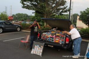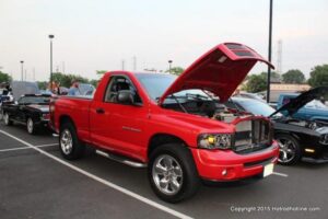 The most recent edition of the Home Depot Cruise Night debuted to mostly clear skies, but with humidity at the uncomfortable level, and temps not too palatable either. Participant turnout though was fairly good, with at least 75 vehicles present at the height of the event, though many did leave earlier than the official ending time of the CruiseNight. At 8:30 P.M. the 50/50 and Trophy awards announcements began, and one of those lucky Trophy winners, was none other than myself, with my 2002 Dodge DakotaSLT Quad Cab.
