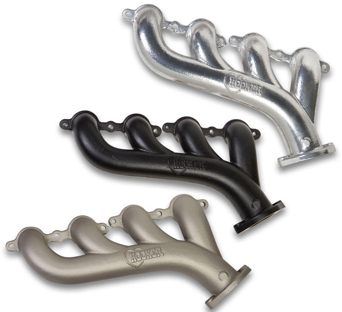 The Hooker LS Cast Iron Exhaust Manifolds are the perfect solution for exhaust in a tight engine bay or where the maintenance-free characteristics of Manifolds are desired. They are designed to hug close to the engine block so they fit into a wide variety of replacement and engine–swap applications. Their contoured design aims the exhaust directly at the exit port for improved flow. Being cast iron means they will provide years of leak–free performance with less under hood noise than traditional headers. Plus, their shorty design means you can route exhaust tubing close to your frame and floor pan for maximum ground clearance. The Manifoldsare available in five finish options including Cast Iron Gray Ceramic, Silver Ceramic, Titanium Ceramic, Black Ceramic, and as cast.