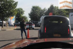 Line up time for the Show was 7:30 a.m., and even arriving at 7:05 a.m., the line was already 4-5 blocks long, and it just kept getting longer. As each vehicle entered the area by the Registration Table, the entry Forms on the Dashboard were quickly checked, a photo of the entered vehicle taken, and one was then directed into the Show Field, and guided to a parking spot.