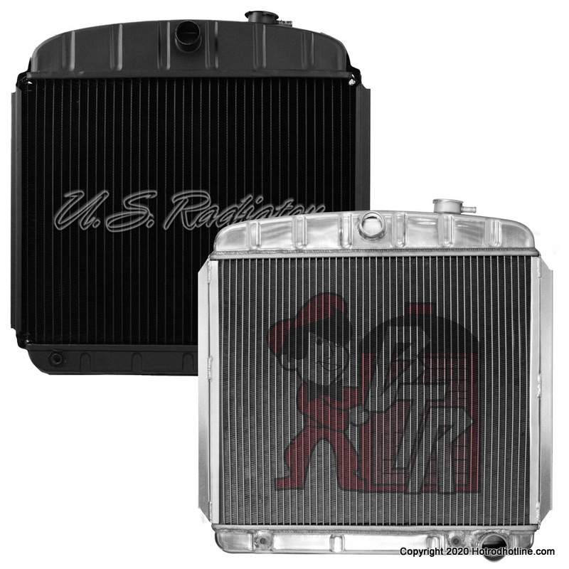 1955-57 Chevy Bel-Air V8 Radiator • ORIGINAL APPEARANCE AND MOUNTING. • APPLICATION SPECIFIC, NOT A UNIVERSAL FIT. • MACHINED BILLET FILLER NECK. • 2 ROWS OF 1” TUBES. • DIE STAMPED COMPONENTS TO ELIMINATE WELD RELATED FAILURES, WHILE PROVIDING UNIFORM HIGH STANDARD QUALITY. • FURNACE BRAZED CORE, NO EPOXY. • POLISHING AVAILABLE. • TRIPLEFLOW AND DUAL PASS OPTIONS AVAILABLE. • MADE IN THE USA.